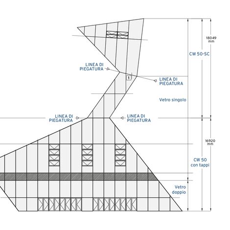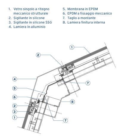 - Soluzione di progetto basata su sistema per facciata con vetro a ritegno meccanico CW 50-SC